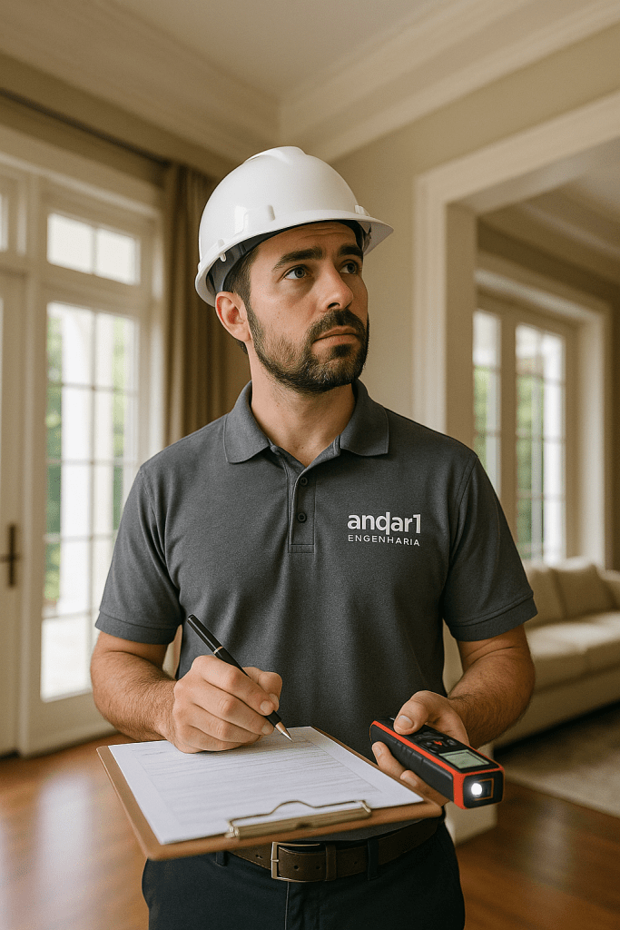 - Identificação de problemas ocultos como infiltrações, trincas, recalques e vícios construtivos